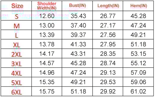 - Size: S,M,L,XL,XXL,3XL,4XL,5XL,6XL